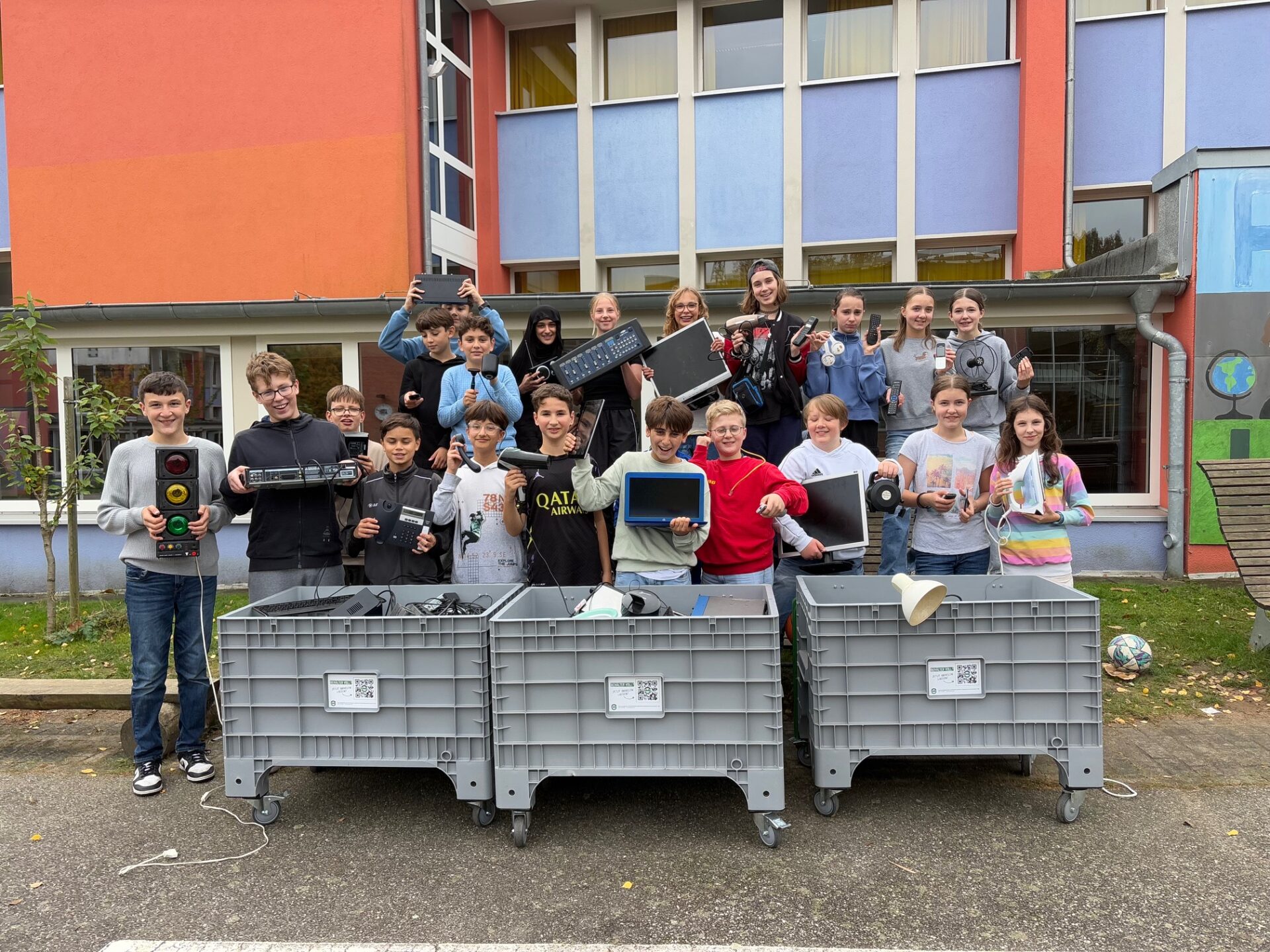 Gesammelt wird mit großem Einsatz: vor Unterrichtsbeginn, in den großen Pausen und auch im Unterricht. Direkt vor dem Klassenraum der 7d ist eine Sammelstelle eingerichtet, an der Geräte entgegengenommen, sortiert und für den Abtransport vorbereitet werden. Ob Toaster, Kabel, Tastatur, Lichterkette oder DVD-Player – alles kann bis zum 14. Oktober in der Schule abgegeben werden.